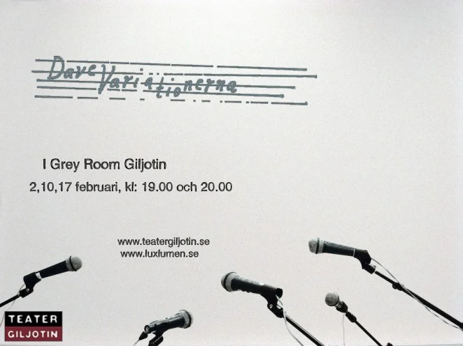 Projektioner & Bild: Martin Malm Såhär beskrevs föreställningen 2010: Föreställningen sker kring en viss person, Dave, och en serie händelser.