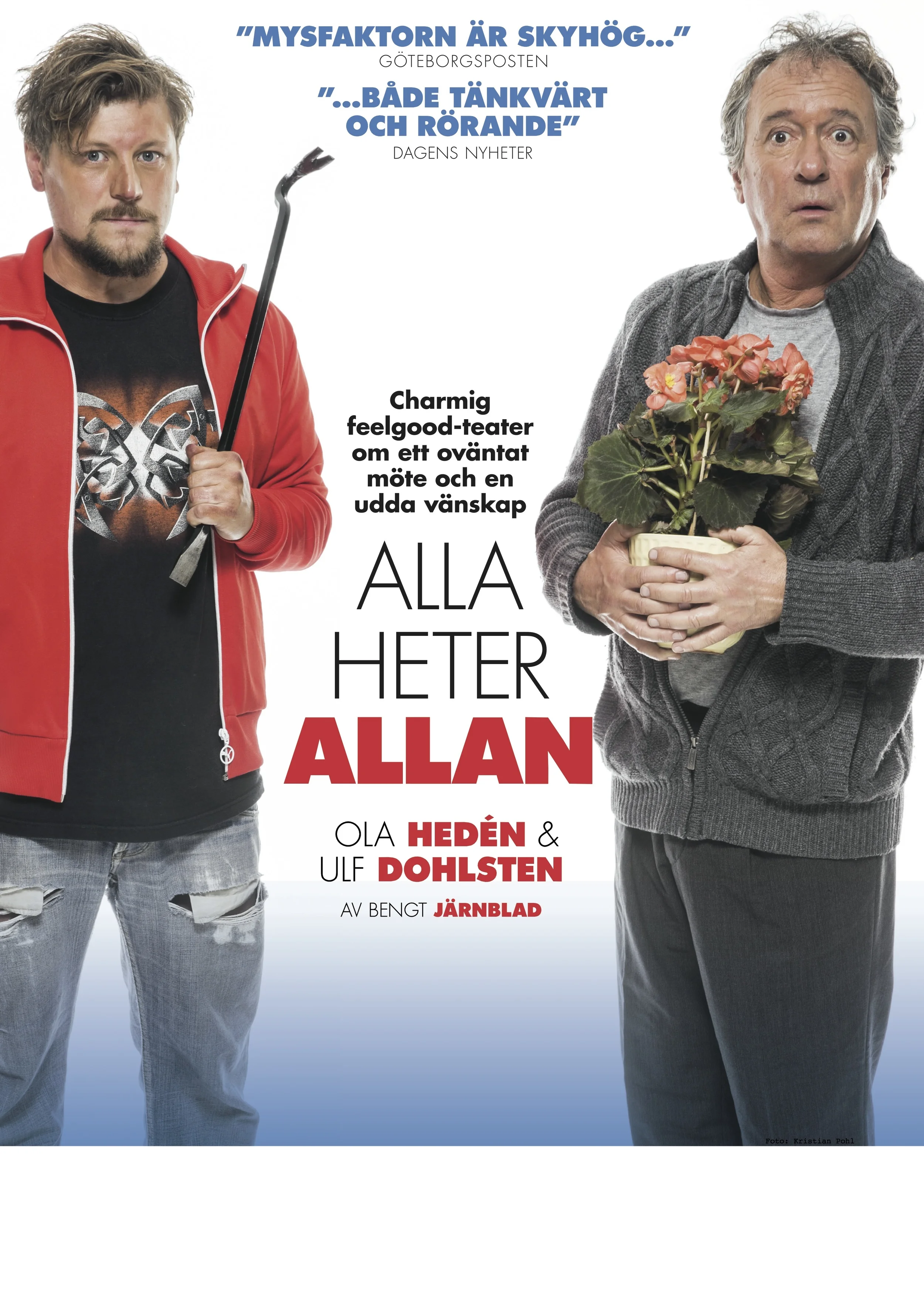 Alla heter Allan är en varm föreställning om Allan och Allan. Charmig och humoristisk feelgood-teater om ett oväntat möte och en udda vänskap. Det fanns en tid när Allan var viktig och uppträdde som världens starkaste man på tivoli. Nu går han runt i sin lägenhet och vårdar sina krukväxter lika ömt som minnet av sin bortgångna fru. Så får han besök av Allan – men inte den Allan som han väntade på … Med en blandning av allvar och humor berättar de sina livshistorier, och allt är inte vad det ser ut att vara. Pjäsen är specialskriven av Bengt Järnblad för Ulf Dohlsten och Ola Hedén.